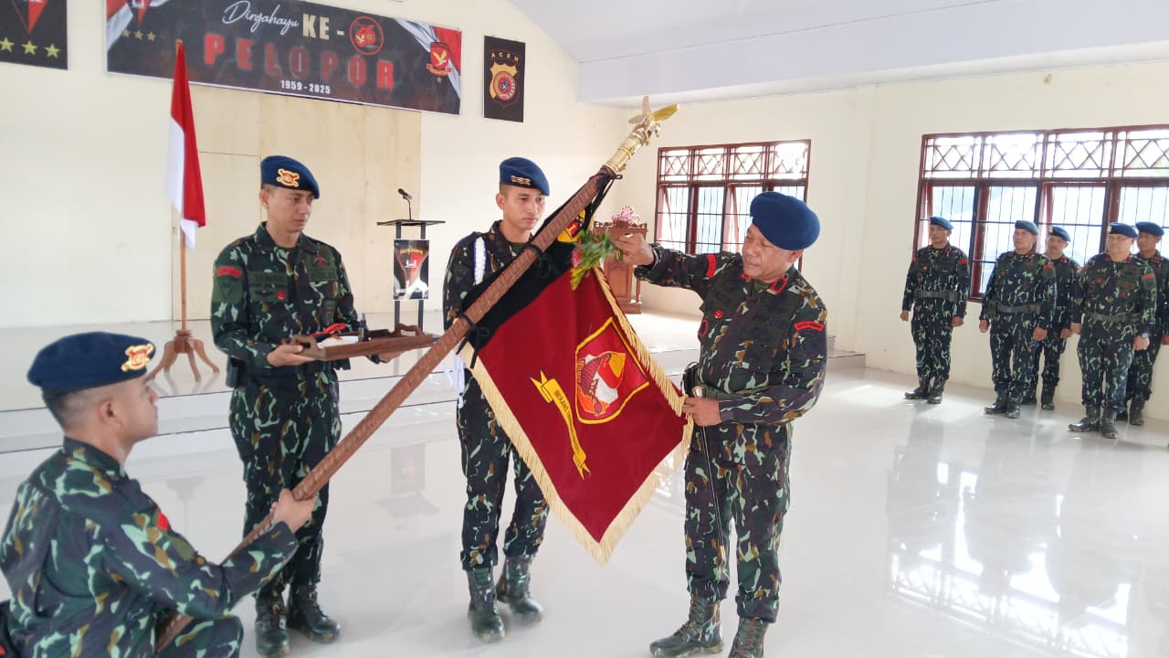 Lhokseumawe, DOBRAKPOST.COM | Batalyon B Pelopor Satuan Brimob Polda Aceh menggelar upacara Penyucian Tunggul “Berani Tangkas Handal”, dalam rangka memperingati Hari Ulang Tahun (HUT) Pasukan Pelopor ke-66 Korps Brimob Polri, bertempat di Aula Mako Batalyon B Pelopor, Sabtu (13/9/2025).