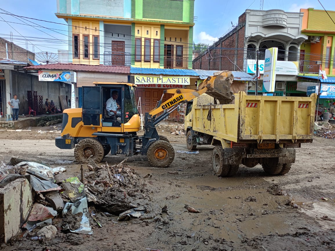 Pembersihan dilakukan menggunakan satu unit mini bulldozer dan dump truck untuk mengangkut lumpur serta material sampah yang selama ini menghambat mobilitas masyarakat.