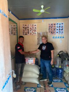 Paket bantuan yang disalurkan berisi sejumlah kebutuhan pokok, seperti mi instan, telur, minyak goreng, dan beras.