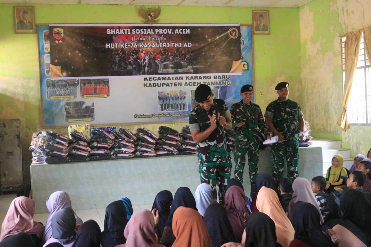 Aceh Tamiang, DOBRAKPOST.COM | Dalam rangka memperingati Hari Ulang Tahun (HUT) Kavaleri ke-76, Batalyon Kavaleri 11/Macan Setia Cakti (Yonkav 11/MSC) melaksanakan kegiatan trauma healing bagi anak-anak yang terdampak banjir bandang di Kabupaten Aceh Tamiang.
